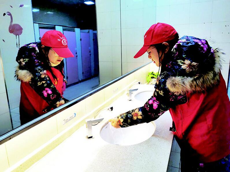 母子同行为公厕“挑刺”