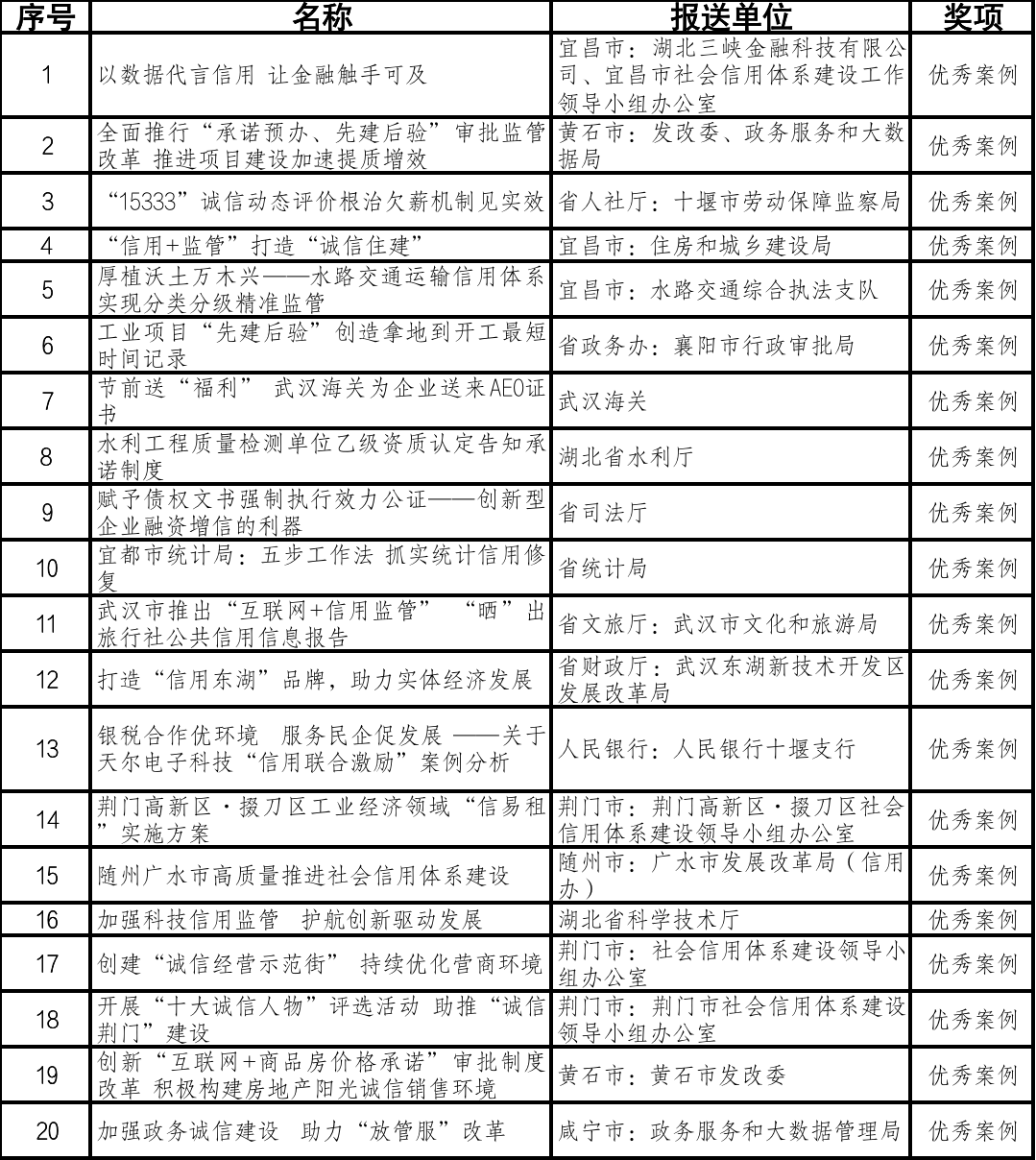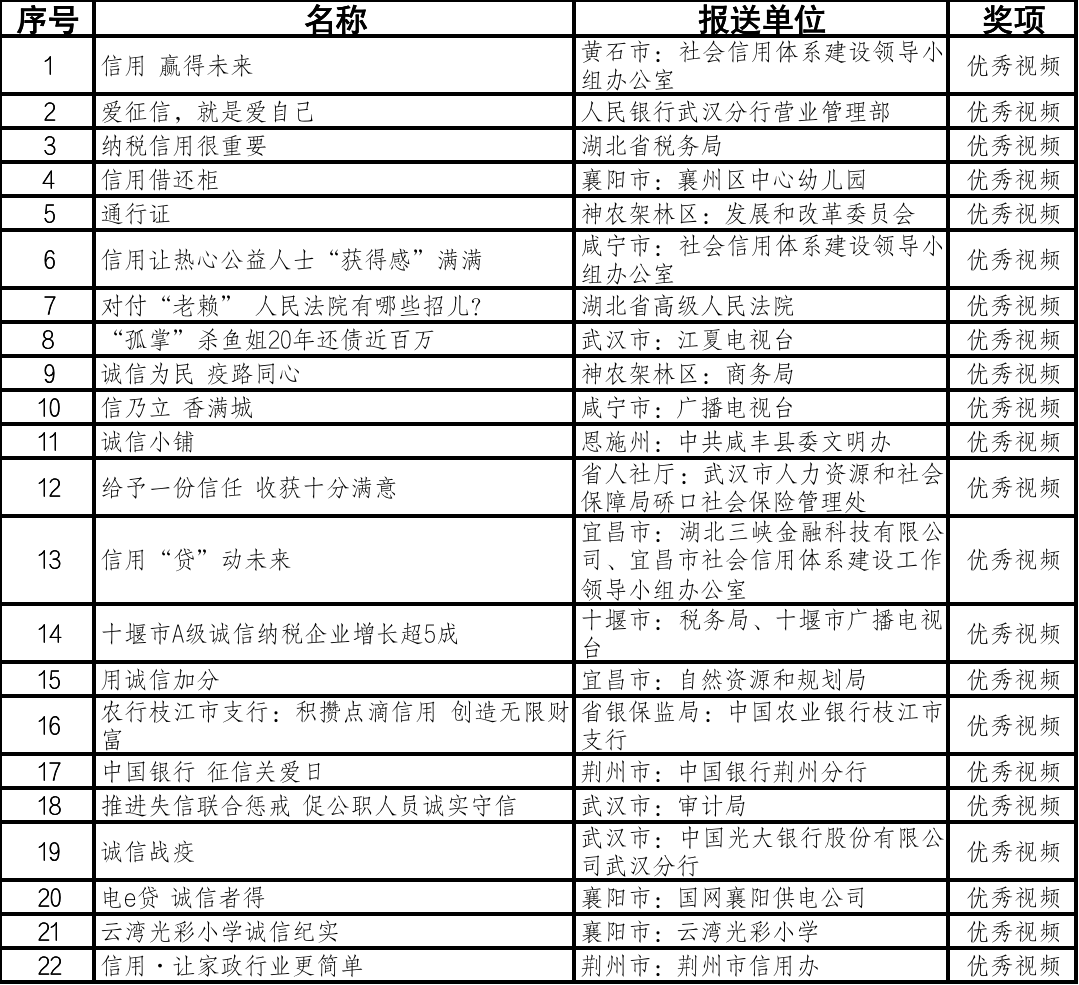 “2020年湖北省社会信用体系建设典型案例及优秀短视频征集评选”结果公布