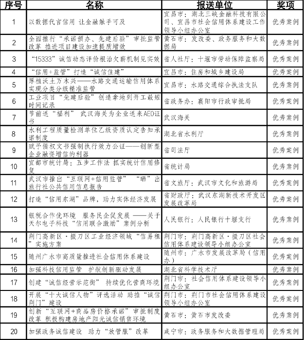 “2020年湖北省社会信用体系建设典型案例及优秀短视频征集评选”入选案例及视频