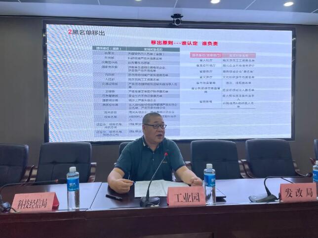 县发改局服务业股股长胡秀琳讲解信用修复工作,从行政处罚信用修复、黑名单移出流程、信用修复操作三个方面指导企业改善信用度。