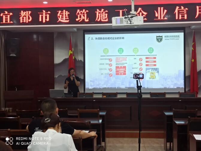 5月28日上午,宜都市建筑业联合会在宜都市兴宜建筑工程有限公司二楼会议室举办“完善信用档案 累积信用财富”企业信用知识培训会,宜昌绿盾企业征信服务中心高级信用管理师受邀作专题讲座。培训会由宜都市兴宜建筑工程有限公司安全总监郑洪源主持,宜都市建筑业联合会各会员单位法定代表人或单位分管业务负责人30家会员单位共计40人参加了此次培训会。活动开始前,宜昌绿盾企业征信服务中心还为参会的企业免费提供“企业信用体检报告”。体检报告内容包括:企业信用档案、信用等级、政府公示信息、司法信息、行业评价信息、知识产权信息、媒体评价信息、金融信贷信息、企业运营信息、市场反馈信息及行政处罚信息。