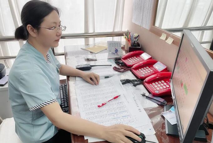 (图为三峡工程大酒店李艾红正在核对客房入住信息)