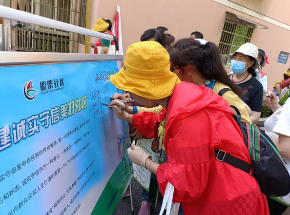 活动当天以线上线下联合宣传方式为主。主会场设在船柴社区,以三线文化为背景,传承文明薪火,建设诚信船柴。以健步行、有奖问答、集体诵读信用承诺书的方式向社区居民和商户宣传诚信建设、反诈骗等知识,并倡议居民签订信用承诺书,向群众发放征信知识宣传单及信用小礼品,积极引导居民在日常生活中讲诚信、重信用,在单位做诚信员工,在家庭做诚信成员,在社会做诚信市民,使讲诚信成为人们的行动自觉,积极营造“知诚信、讲诚信、守诚信、用诚信”的浓厚氛围。当天累计发放折页1000余份,签订信用承诺书350余份,向近1000人次进行征信知识宣传。