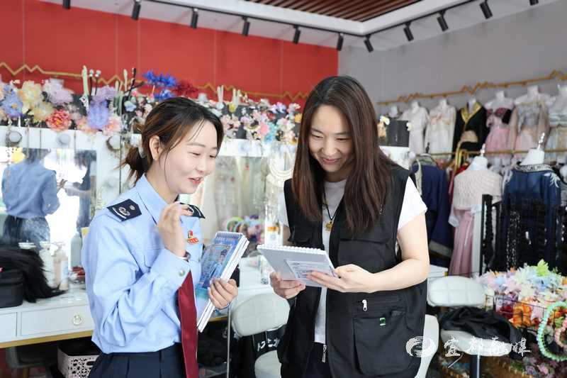 “我们设计的文创漆扇和台历以漫画形式呈现税务干部走访本地地标及企业的场景,每月标注申报截止日期,兼具实用性与纪念意义。” 宜都市税务局第一分局林玲向商户展示文创产品时介绍道。除上述物品外,个税宣传手册、税宣月海报、短视频征集海报与签名墙、打卡框共同组成税宣“七件套”,覆盖政策解读、法治宣传与互动体验三大功能。