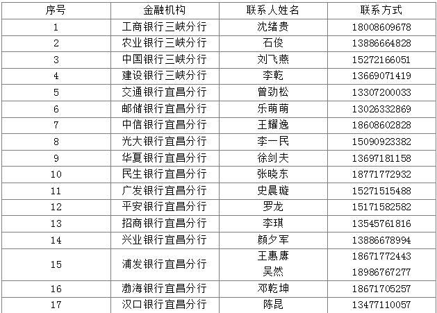 为贯彻落实党中央、国务院关于建立支持中小微企业发展的信用信息互联互通机制、推动信用信息共享、扩大信息共享范围、探索银行资金流信用信息共享应用的重要决策部署,充分发挥中小微企业资金流信用信息价值,支持中小微企业更好获得融资服务,本着共建共享原则,中国人民银行组织金融机构,建设全国中小微企业资金流信用信息共享平台,平台于2024年10月上线试运行,31家金融机构参与试运行工作。宜昌辖内,17家金融机构参与运行工作,具体名单及业务联系人如下: