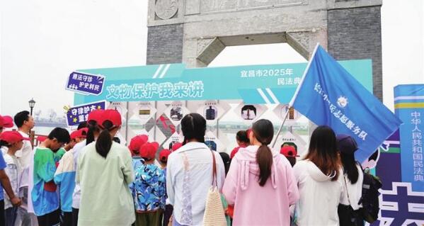 5月10日,由宜昌市司法局主办、猇亭区司法局承办的2025年民法典宣传月“普法市集”活动在猇亭织布街火热开展。活动现场,“法律明白人解忧铺”提供法律援助、调解、公证等咨询服务,“宜典就通”游戏区通过转盘问答、侵权识别等趣味闯关,吸引市民答题打卡。“非遗普法创意坊”皮影戏、剪纸、蓝染法镜等让法治知识“看得见、带得走”,“文物保护我来讲”街区通过图文介绍,串联文物保护古今故事和法律知识,深受小朋友们的欢迎。“长江小哨兵”志愿服务队30名小志愿者还通过即兴绘画表达了对长江生态保护的美好愿景。 三峡日报通讯员 张秋婷 裴蜀华 摄