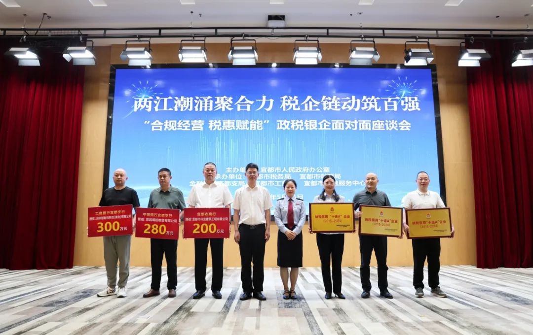 (通讯员林玲、薛钰)5月21日,宜都市政府举办“两江潮涌聚合力 税企链动筑百强”暨“合规经营 税惠赋能”政税银企面对面座谈会,为3家纳税信用“十连A”企业颁奖并开展诚信经验交流与合规发展探讨。