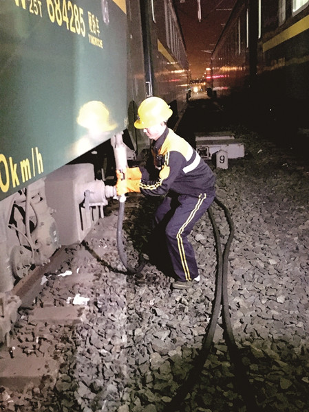 铁路工人周祖恩:每天给20多趟动车补水