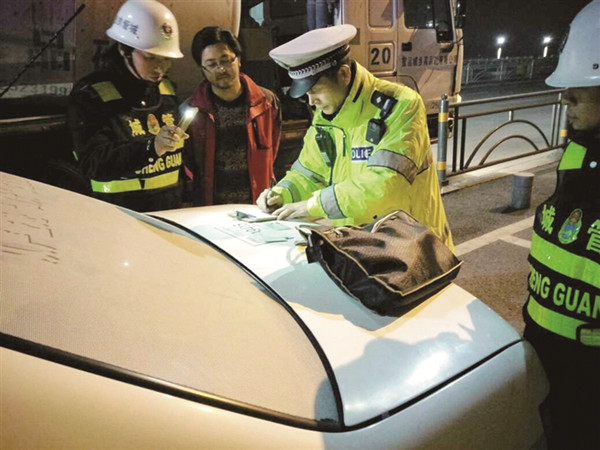 零点的沿江大道,江风凛冽,室外气温已接近0摄氏度,治超卡点上一台警车正闪烁着警灯,这台看似普通的警车就是王雪峰的临时岗亭。此时,他正立于车旁,一丝不苟地检查过往车辆。从晚8点到次日清晨7点,整整11个小时,47岁的他都值守于此,查处各类违法,杜绝超重车辆上桥,保证至喜长江大桥安全畅通。