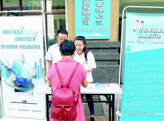 8月至9月中旬,宜昌各保险公司在宜昌保监分局和市保险行业协会指导下,有序启动了“金融知识普及月金融知识进万家”暨“提升金融素养争做金融好网民”活动。