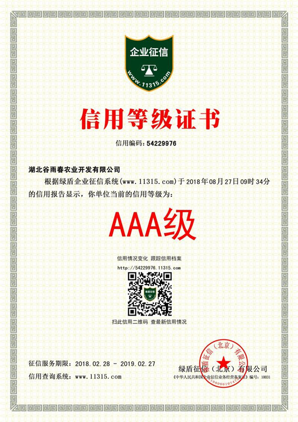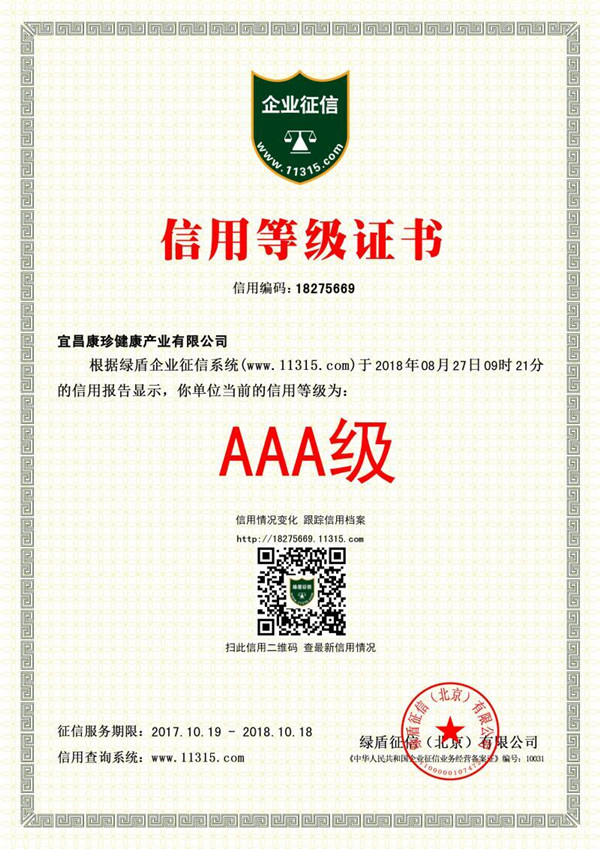 宜昌市自2014年引入绿盾全国征信系统,成立第三方信用服务机构,设立“企业征信”窗口以来,受到当地政府部门,企事业单位的大力支持和推动,企业积极建立完善信用档案,各企业力争成为本行业的领头羊,涉及民生福祉的食品行业更是诚信建设的重要领域,以下是本行业AAA级企业展示(排名根据立信时间先后顺序展示)。