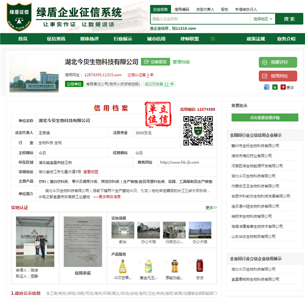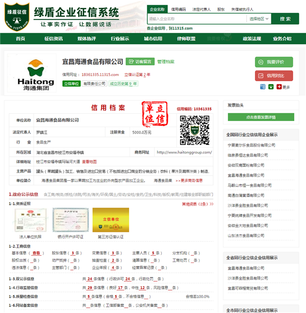 依托绿盾征信系统打造放心食品—本行业AAA级企业展示