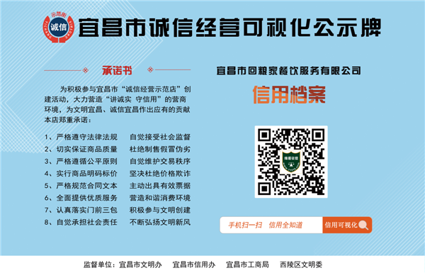 宜昌市解放路步行街是宜昌市最繁华的商街,聚集了近百家商户,此次项目覆盖商街103家商户,通过线上线下汇集企业信用信息,形成独立对应的商户信用二维码,将实现示范街企业信用档案覆盖率100%,同时围绕步行街商户诚信建设工作,参与商户均签订信用承诺书,对商品质量、商品价格、消费环境、有效票据、社会责任等方面进行承诺,并张贴了任何监管单位、客户只要用手机扫描该二维码即可联通该商家的互联网信用档案,即可“一网打尽”该商家的信用记录。