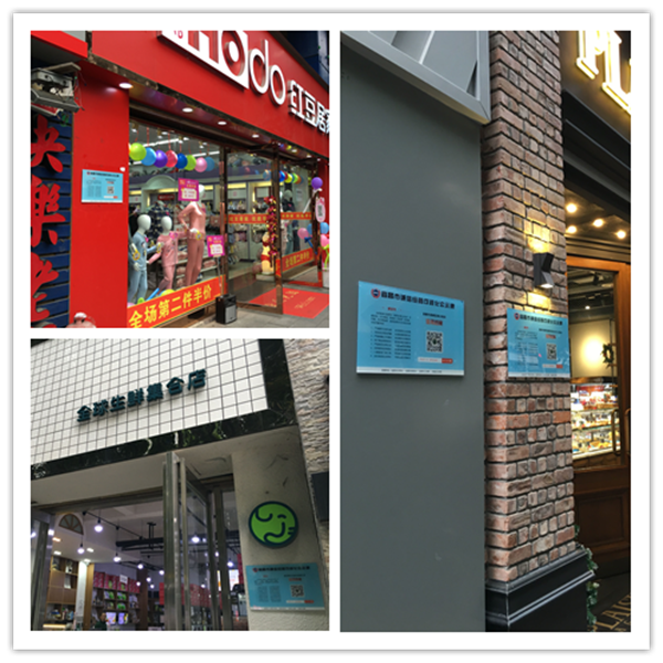 创新运用“互联网+诚信”相结合的方式,通过张贴统一形式的商户信用二维码和商户信用承诺书,向公众展示示范街商户信用状况,只需扫一扫二维码,就能查询到企业基本信息、政府监管信息、司法信息、银行信贷信息、行业评价信息、主流媒体评价信息、企业管理信息、市场反馈信息八个维度的情况,方便政府部门、企业、大众查询使用。
