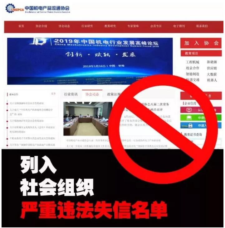 中国机电产品流通协会将被列入严重违法失信名单