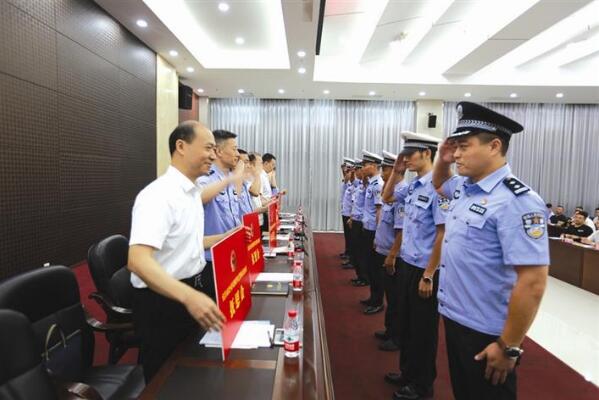 9月1日上午,“宜昌市公安机关维护民警执法权威工作”新闻通气会在城区召开,会上发布宜昌市公安机关维护民警执法权威工作“十大”典型案例,并举行全市公安机关维护民警执法权威工作宣传周暨第二届维权基层行活动启动仪式。