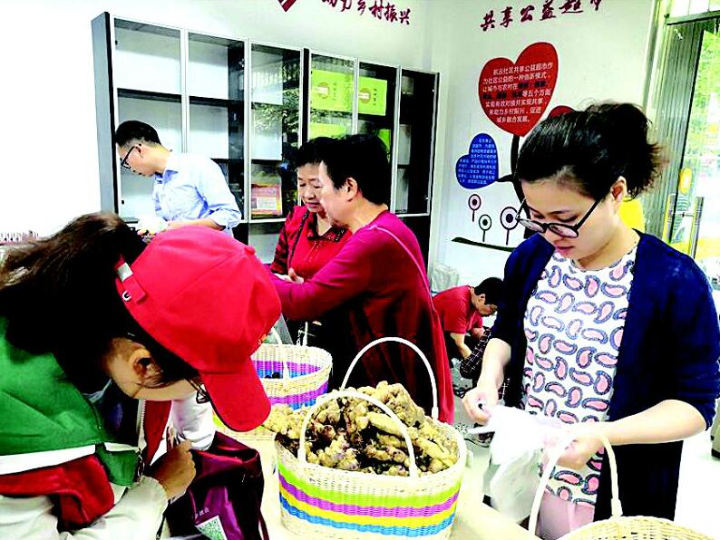 居民在社区共享公益超市购买农产品。(记者邹前俊 摄)