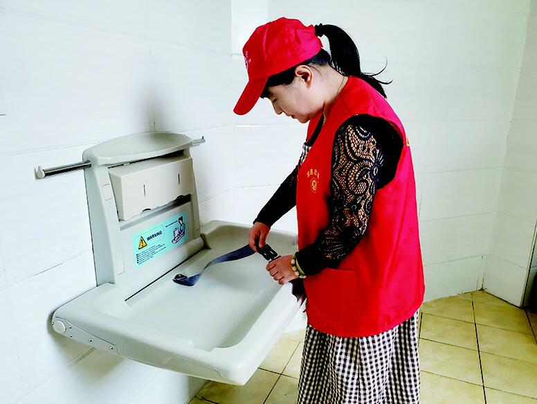 义务闻臭员正在检查第三卫生间的设施是否完好。记者郑岚 摄