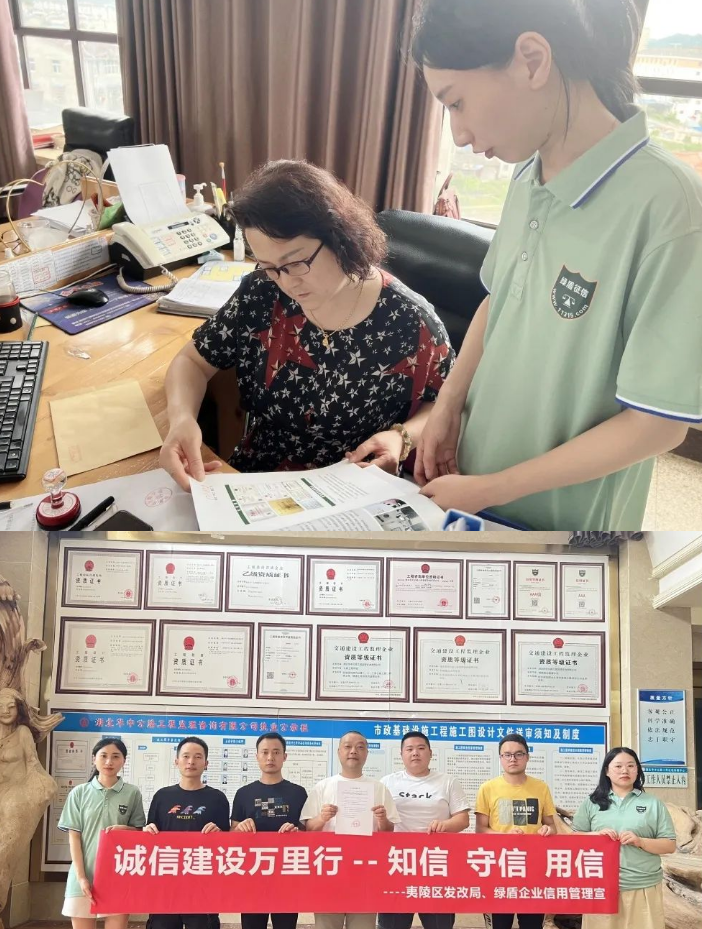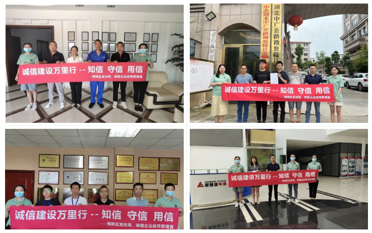 通过走进湖北省鄂西地质勘察设计院有限公司、湖北华中公路工程监理咨询有限公司、湖北中广公路勘察设计有限公司、上海爱登堡电梯(宜昌)有限公司、湖北联诺建设有限公司、湖北三峡银岭冷链物流股份有限公司、湖北满天星节能环保科技有限公司七家夷陵区企业,向企业员工代表讲解信用体系建设的重要性,强调诚信经营是企业安身立命之本,鼓励企业主动接受监督、督促行业合规自律、诚信经营,推动企业信用建设,并签署“企业信用建设承诺函”,发挥企业在信用体系建设中的主力军做用,为信用领跑企业的创新与发展赋能。