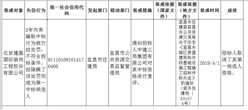 北京建磊国际装饰工程股份有限公司失信惩戒案例